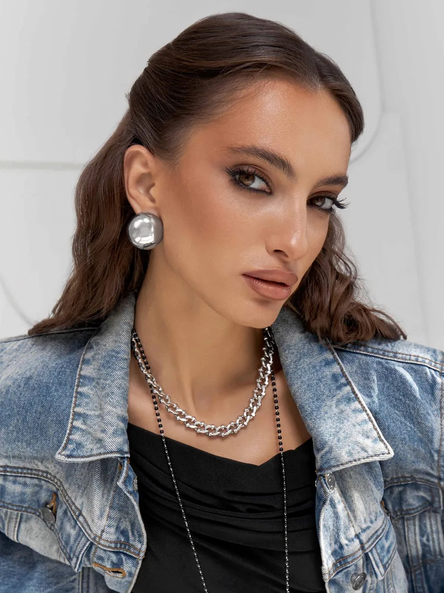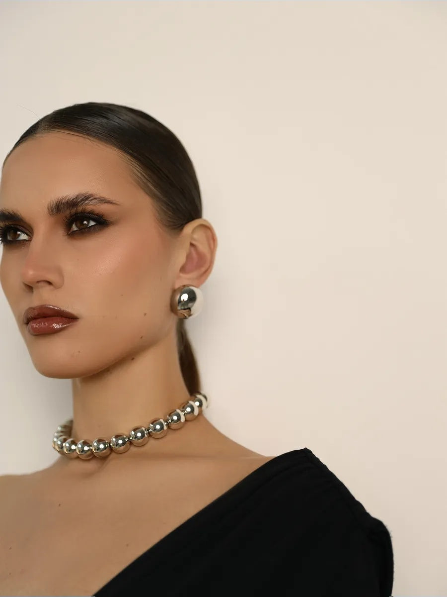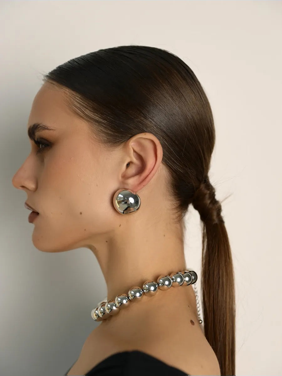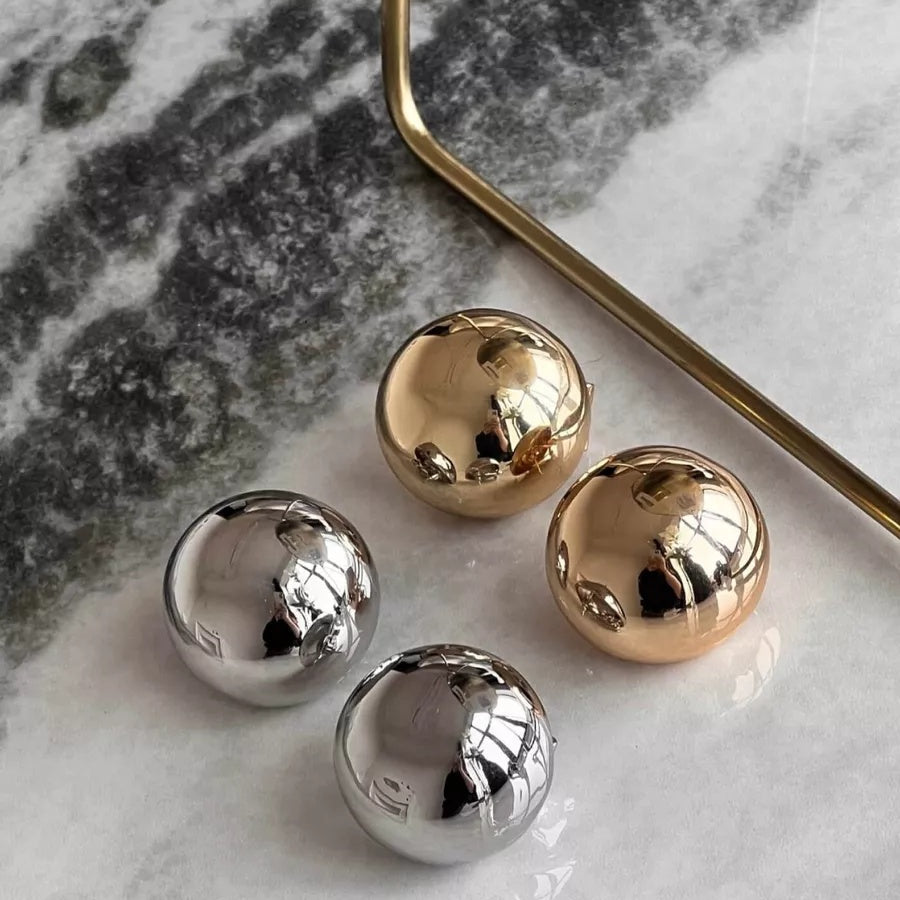 Вишукані сережки з бездоганною сферичною формою — справжній символ мінімалізму та елегантності. Дзеркально-гладка поверхня створює ефект «рідкого металу», красиво відбиває світло й додає образу статусності. Ця модель виглядає стримано, дорого та універсально — ідеальна як для щоденних луків, так і для вечірніх виходів.