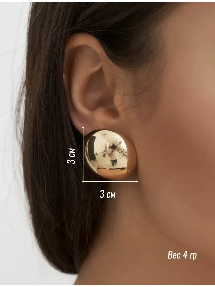 Дизайн: сережки-пусети у формі гладкої сфери, глянцева дзеркальна поверхня, мінімалістичний силует