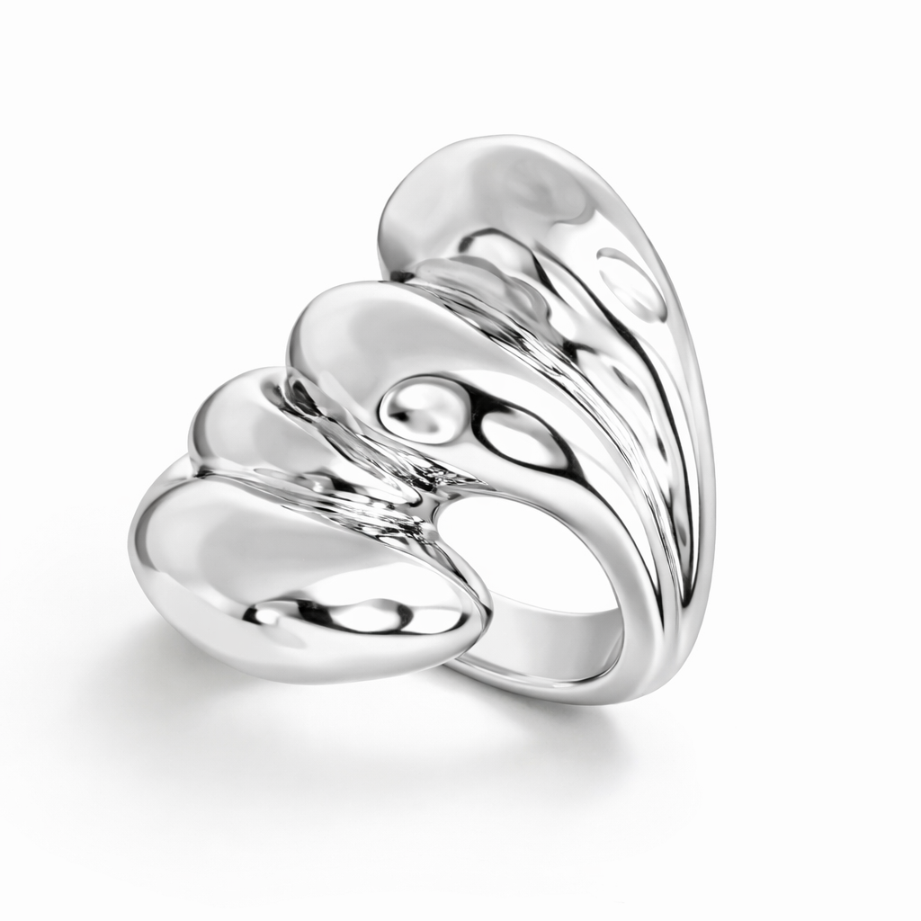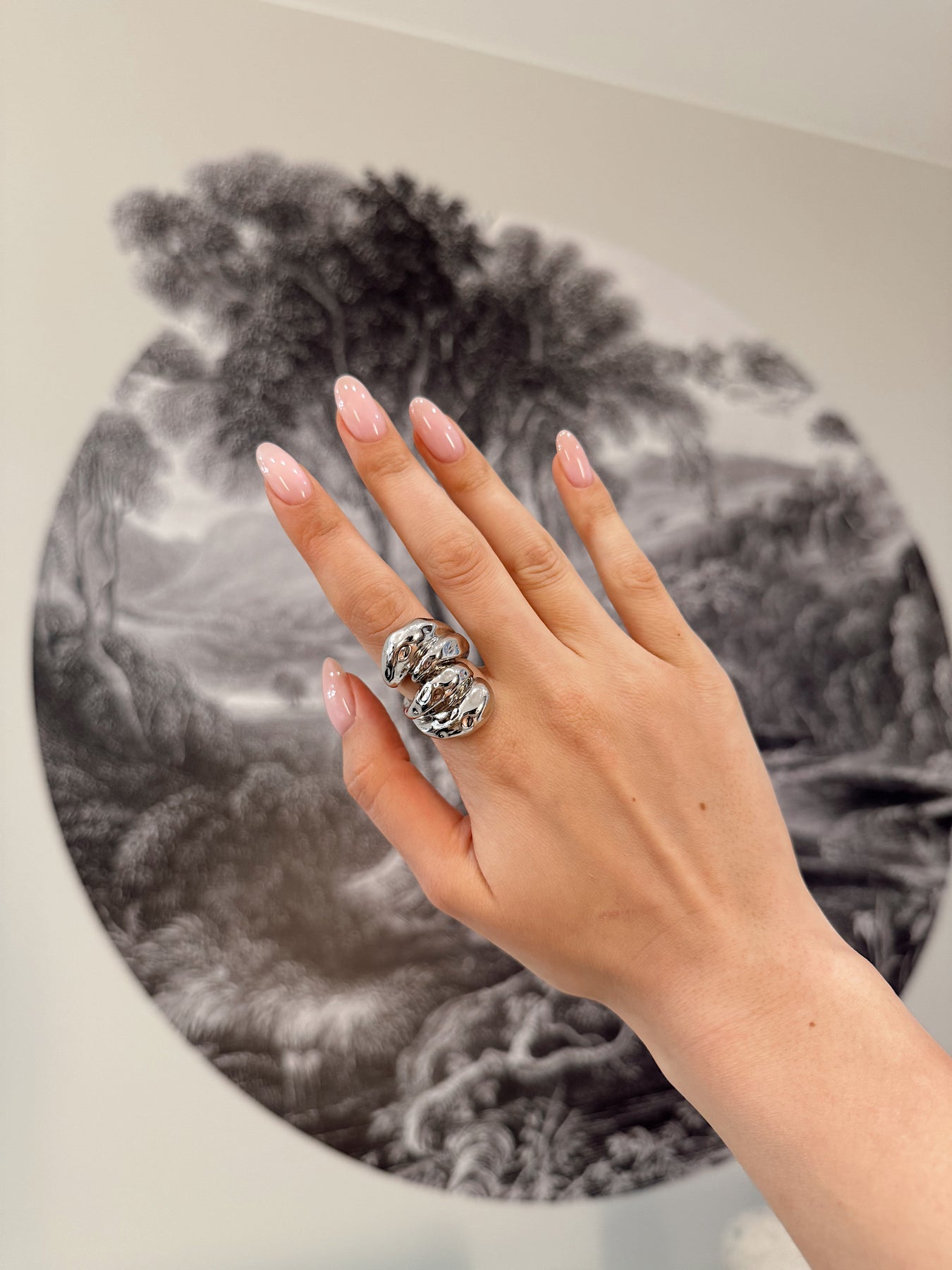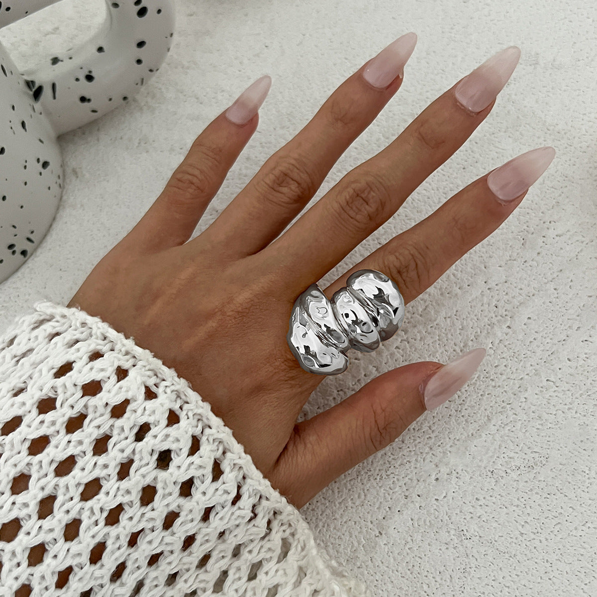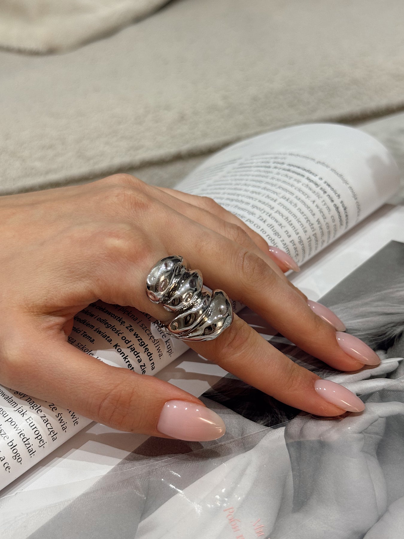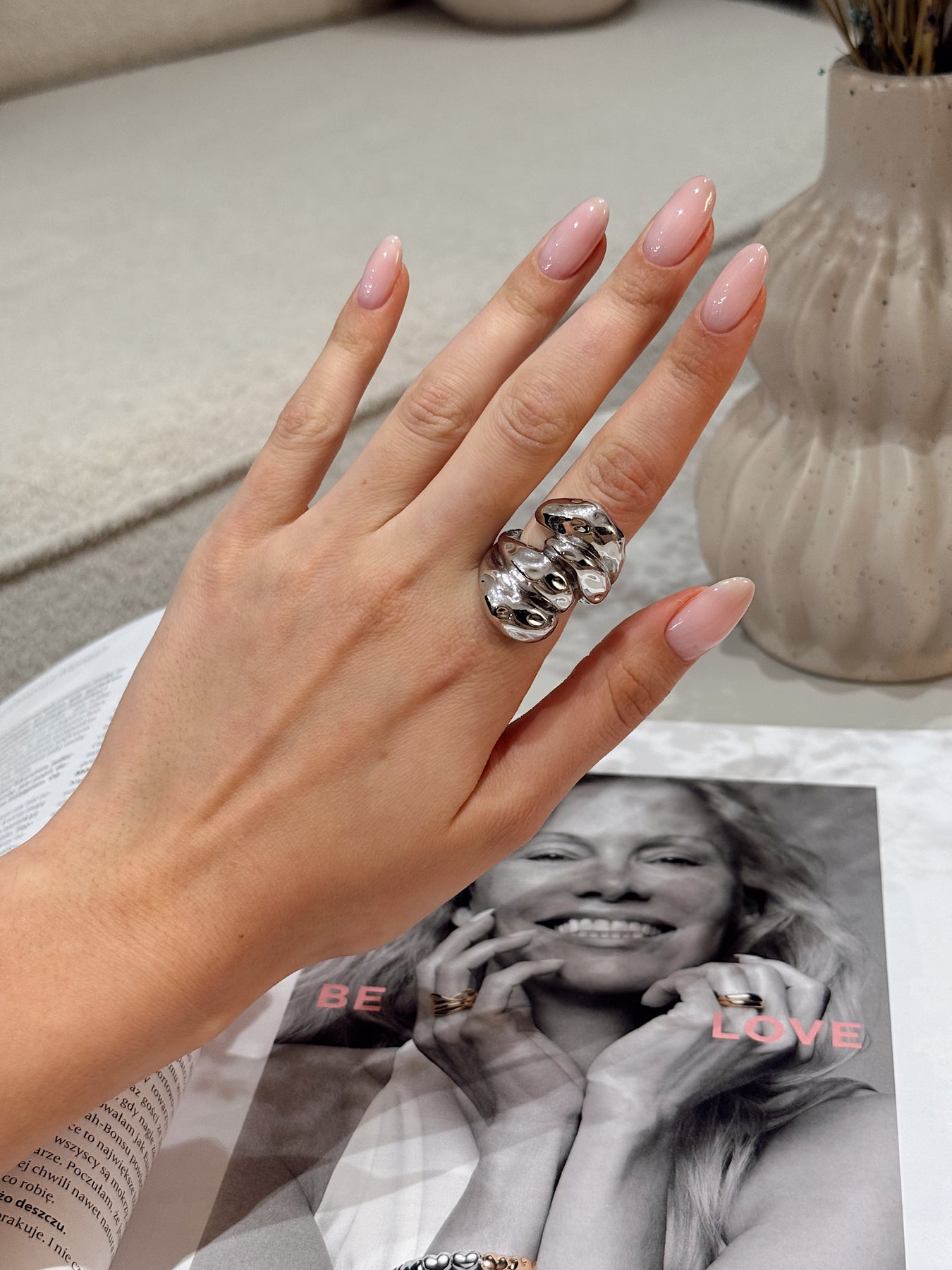 Скульптурна каблучка з ефектом рідкого металу — акцентна прикраса для тих, хто любить сучасну естетику та сміливі форми. Об’ємний дизайн виглядає як арт-об’єкт на руці: м’які хвилі, дзеркальні переливи та відчуття руху в кожному вигині. Каблучка самодостатня, привертає увагу й задає характер усьому образу.