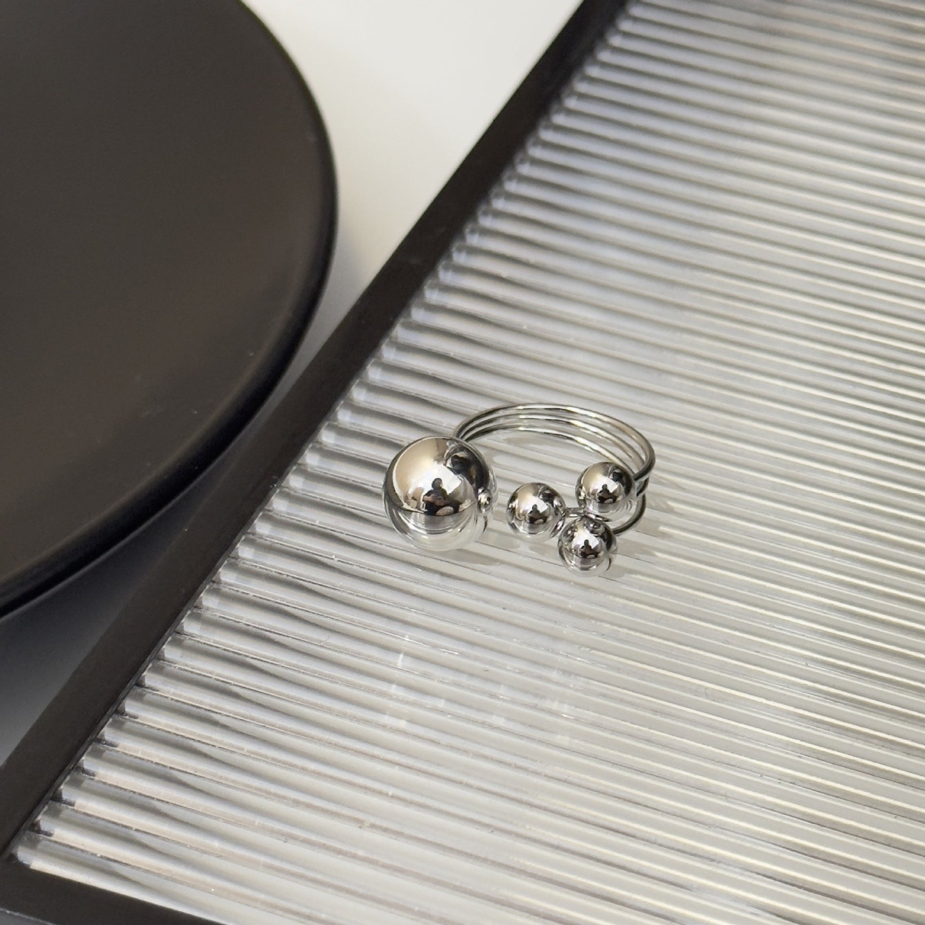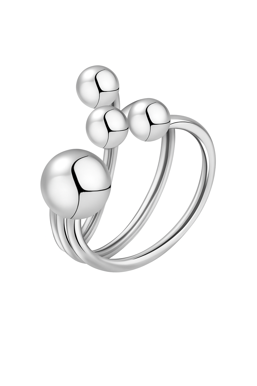 Унікальне кільце з потрійною основою та чотирьма декоративними кульками - яскравий акцент для вашої руки. Модний геометричний дизайн, що не залишить байдужим.