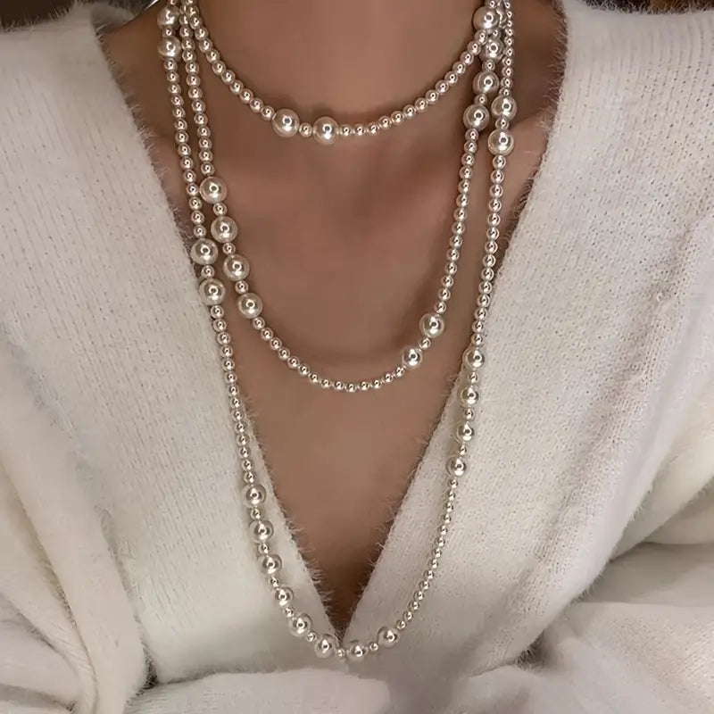 Це намисто створене для тих, хто цінує елегантність і класику. Три ряди перлин різного розміру витончено обрамляють шию, додаючи образу вишуканості. Підходить як для урочистих подій, так і для щоденних елегантних луків.