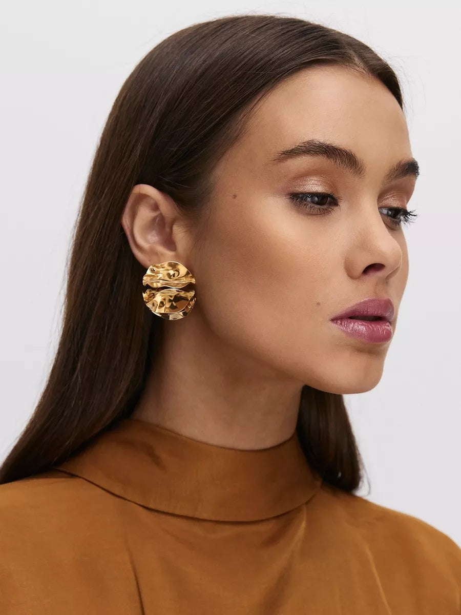 Сережки «Хвиля» з перлинами в золотій асиметричній оправі