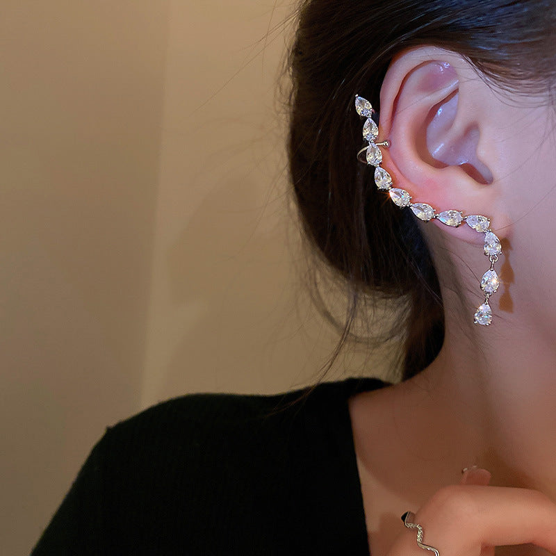 Світло ловиться в кожному русі — цей кафф створений, щоб привертати погляди. Ідеально повторює лінію вуха, виблискуючи краплями кристалів, ніби розчинених у повітрі. Ефектна альтернатива класичним сережкам для вечора чи особливого випадку.