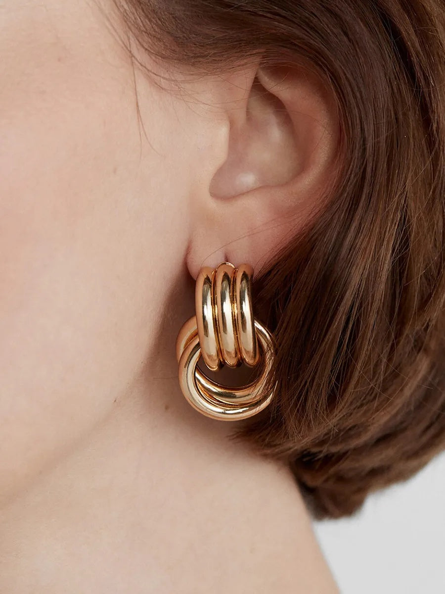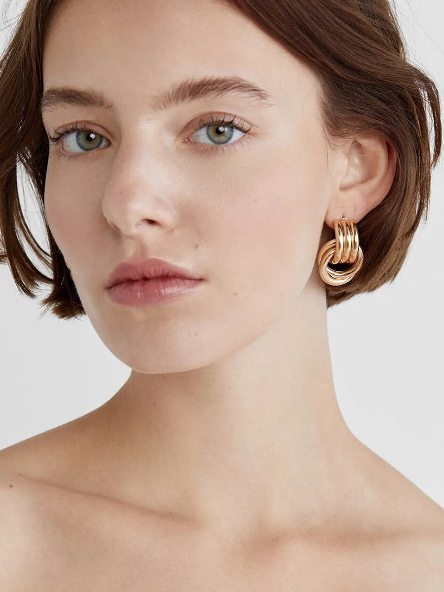 Вражаючі сережки у стилі мінімалізм з акцентом на форму. Ці прикраси — більша, сміливіша версія наших улюблених сережок із переплетених кілець. Більш масивні, але такі ж універсальні — чудово доповнять як базовий образ, так і вечірній вихід.