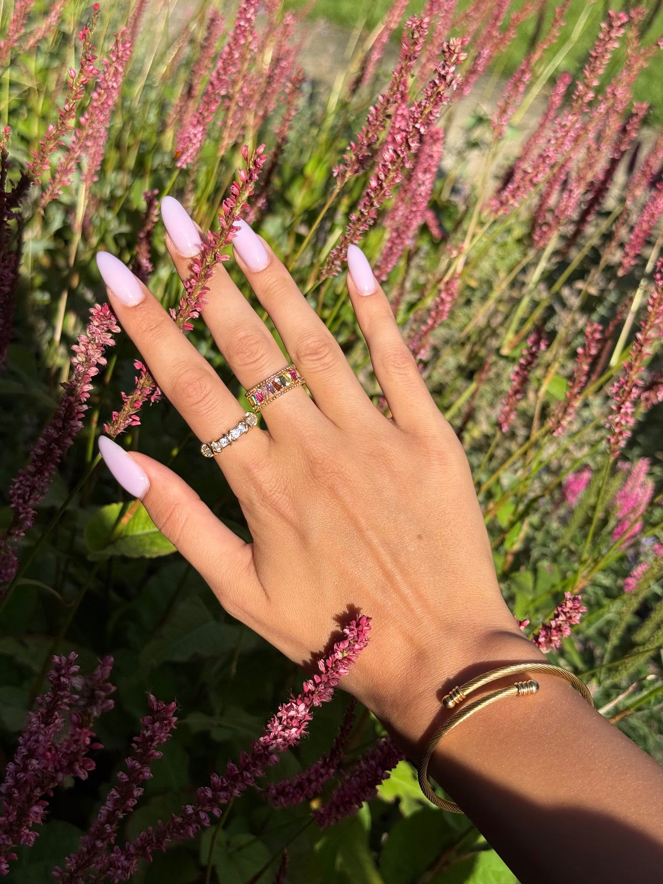 Стильна каблучка з акцентом на колір і текстуру, що приваблює погляд. Поєднання геометричних вставок створює ефект динаміки й елегантності, доповнений об’ємною оправою. Ідеальний вибір для тих, хто хоче додати образу виразності.