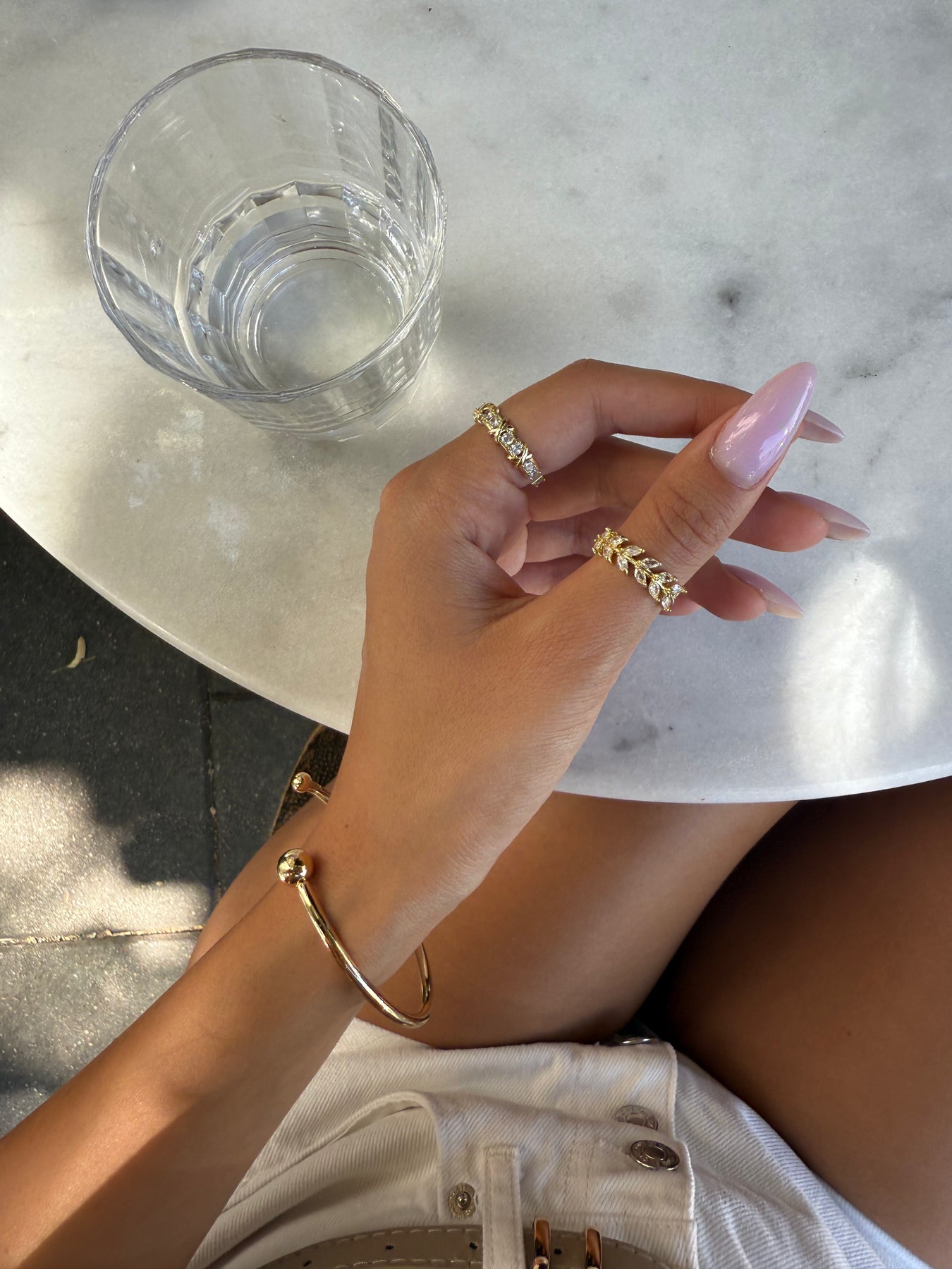 Ця каблучка втілює натхнення природою у кожному вигині. Її форма нагадує гілочку з блискучим листям, яке делікатно огортає палець. Вона водночас ніжна і яскрава — ідеальна для романтичних натур або як подарунок з особливим сенсом.
