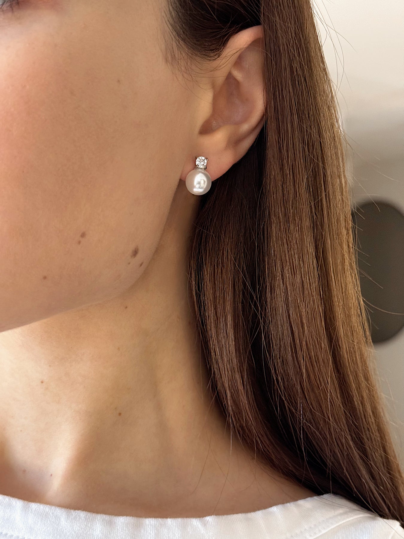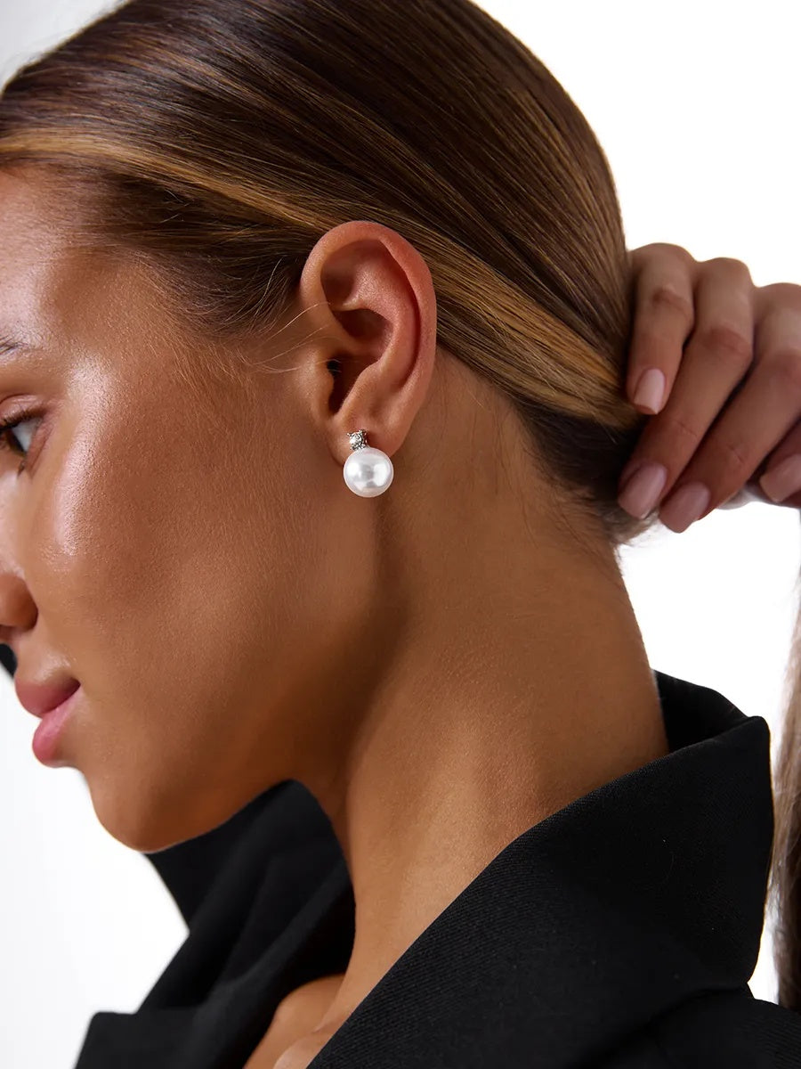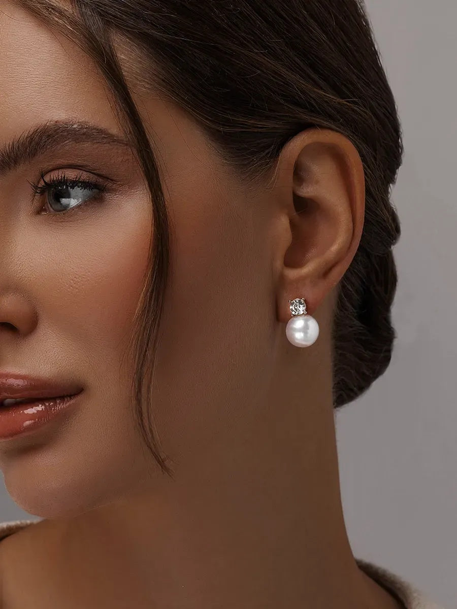 Ці сережки — втілення стриманої розкоші та класичної елегантності. Поєднання сяючої штучної перлини та прозорого кристалу створює ефект «чистого світла» — прикраса виглядає дорого, витончено й поза часом. Вони ідеально доповнюють як вечірні образи, так і лаконічні повсякденні стилізації, додаючи образу благородного акценту.